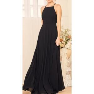 LULU'S sz L Total Beauty Black Backless Halter Maxi Party Formal Dress NEW B149