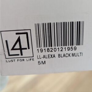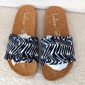 LULUS x L4 lust for life Alexa black and white abstract Chevron with cork slides sandals NIB never worn.