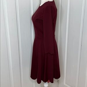 “Lulus Cumulonimbus Clouds Burgundy Skater Dress is named after a powerful storm cloud! Princess seams run down the flattering, stretch-knit bodice and into a fitted waist, before splaying out in a skater skirt. Flirty scalloped detailing adorns the hems at both the three-quarter sleeves and the twirl-worthy skirt! Hidden back zipper.”