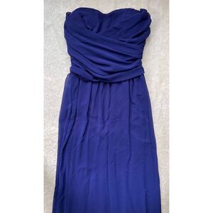 Lulus Exclusive. The Slow Dance Strapless Navy Blue Maxi Dress is playing your song, so slow it down and snuggle up to your sweetie in this gorgeous chiffon confection. Crisscrossing panels drape across a strapless sweetheart bodice, creating a figure-flattering, ruched silhouette, with a cinched and gathered waist that flows into a stunning floor-length maxi skirt. Padded bust and elastic across the back form a flattering fit. Hidden back zipper. Fully lined. Model is 5'10" and is wearing a size small. 100% Polyester. Hand Wash Cold or Dry Clean.