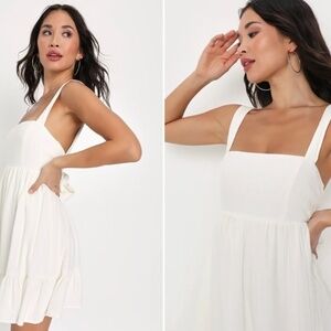 $59 Retail LULU's Bachelorette Engagement Bridal Shower Honeymoon Casual Brunch Resort Vacation Babydoll Open Tie Back Mini Dress NWOT (new without tags)
