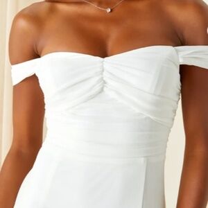 LULU's Bridal Chiffon White Off-the-Shoulder Flowy Romantic Gown • NWOT