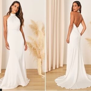 $148 Retail LULU's Bridal Elegant Satin Backless High Neck Mermaid Trumpet Maxi Gown NWOT (new without tags)