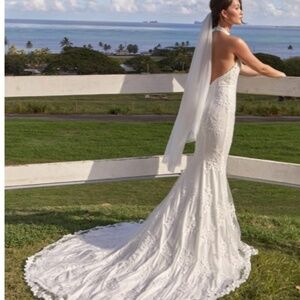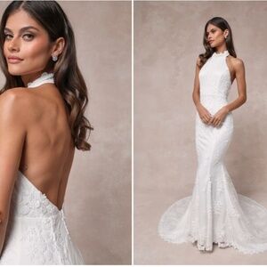 $178 Retail LULU's Bridal Wedding Sophisticated Floral Embroidered Mermaid Trumpet Gown NWOT