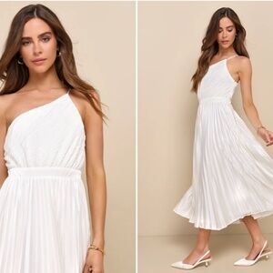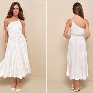 $88 Retail LULU's Sexy Elegant Sophisticated Bridal Shower Reception Elopement White Flowy Wedding Midi Dress NWOT (new without tags)