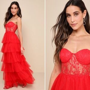 $118 LULU's Elegant Prom Wedding Special Event Sexy Bustier Tiered Ruffle Maxi Dress NWOT (new without tags)