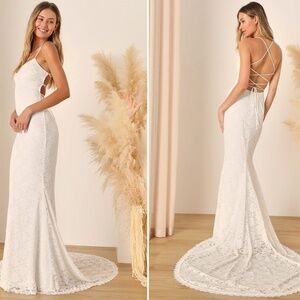$118 Retail LULU's Elegant Sexy Wedding Bridal Shower Engagement Lace Flowy Corset Back Maxi Gown NWOT (new without tags)