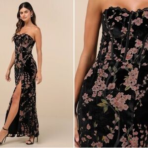 $138 Retail LULU's Floral Sexy Flowy Prom Wedding Chic Floral Velvet Bustier Maxi Dress NWOT (new without tags)