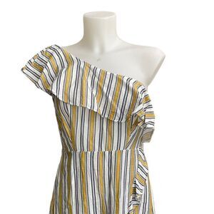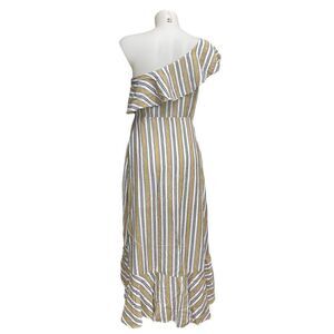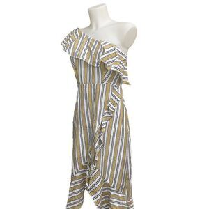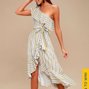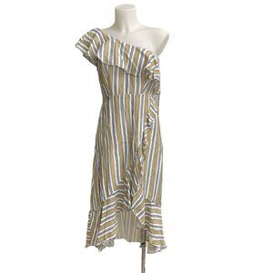LULU’s High Tide Yellow White Striped One Shoulder Ruffled Midi Dress sz small