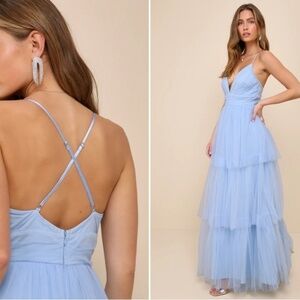 $98 Retail LULU's Prom Sexy Tiered Ruffles Boho Chic Blue Maxi Dress NWOT (new without tags)