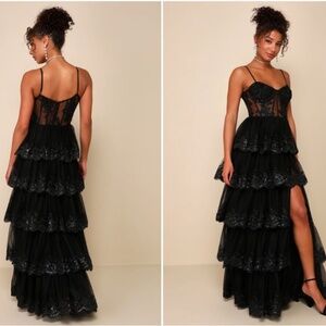 LULU's Prom Wedding Boho Sexy Elegant Tiered Ruffles Corset Tulle Chic Dress