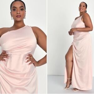 $79 Retail LULU's Prom Wedding Bridesmaid Sexy One Shoulder Satin Thigh Slit Gown NWOT