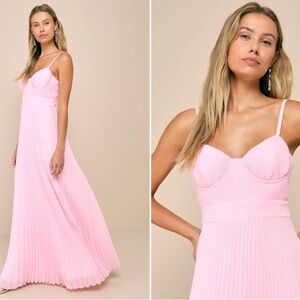 LULU's Prom Wedding Bridesmaid Sexy Pleated Bustier Romantic Flowy Maxi Dress