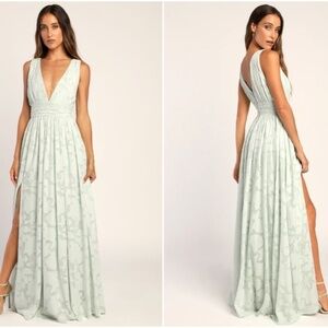 When it comes to looking elegant, the Lulus Sweet Sophistication Sage Green Burnout Floral Maxi Dress is at the top of the list! All eyes will be on you with this woven chiffon dress that features a burnout floral design that shapes wide tank straps, a plunging V-neckline (and back), and a gathered bodice. A pleated empire waist continues to a flowy maxi skirt with a thigh-high side slit. Hidden back zipper/clasp.