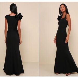 We love the elegant and timeless look of the Lulus Lucette Black Sleeveless Ruffled Mermaid Maxi Dress! Medium-weight crepe knit shapes this stunning maxi dress with a seamed, darted bodice and asymmetrical square neckline. A flared strap at one side and flouncy ruffled shoulder at the other, create a statement-making look. A fitted, banded waist and figure-flattering maxi skirt fall to a mermaid hem. Hidden back zipper/clasp.