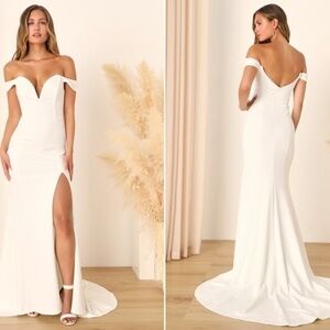 $138 Retail LULU's Bridal Wedding Chic Modern Sexy Minimalist Mermaid Off the Shoulder Trumpet Maxi Gown NWOT (new without tags)