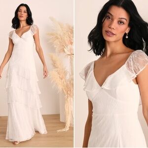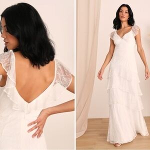 $158 Retail LULU's Sexy Bridal Wedding Floral Lace Romantic Boho Flowy Tiered Ruffles Gown NWOT (new without tags)