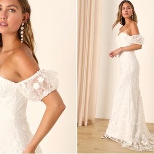 $178 Retail LULU's Sexy Bridal Wedding Floral Mesh Off the Shoulder Sweetheart neckline Puff Sleeve Mermaid Trumpet NWOT (new without tags)