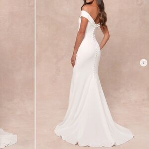 $158 Retail LULU's Sexy Chic Elegant Bridal Off-the-Shoulder Sophisticated Romantic Classic Gown with Train NWT