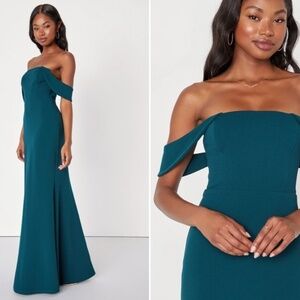 $88 Retail LULU's Sexy Prom Wedding Bridesmaid Emerald Green Off the Shoulder Mermaid Gown NWOT