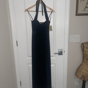 This could be worn as a prom dress or just going out! It is so beautiful! A slight metallic tint to the fabric! Color: Black.