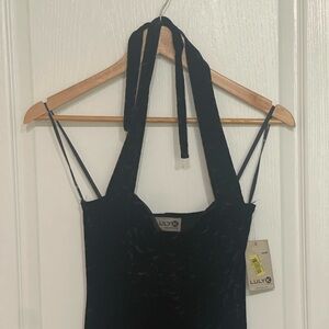 This elegant black halter dress is perfect for any occasion. Its sleek design offers a timeless look that is both stylish and versatile.