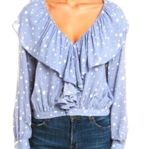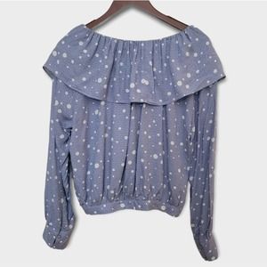 LUMIERE Blue Polka-dot Longsleeve Blouse Size Medium