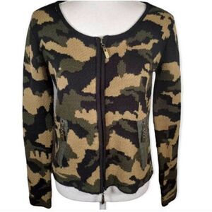 LUMIERE GREEN CAMO ZIP FRONT SWEATER SZ.S EUC.