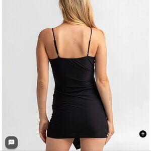 Lumiere Cinch Side Bodycon Dress. Deep V Neckline. Cinched at the left side. Fitted bodycon silhouette. Approx. length: 29". Self: 87% Nylon 13% spandex. Lining 92% Polyester 8% Spandex Hand wash. Imported.