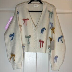 LUNA IVY Bows Button 3D Up Cardigan Sweater Size S NEW WITH TAG