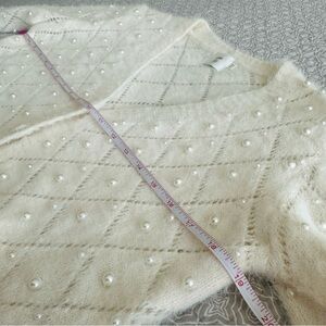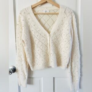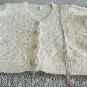 LUNA IVY Diamond Pattern Cardigan Sweater Pearls Beaded Fuzzy Coquette Size M