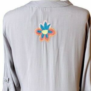 LUNA MOON Gray Floral Embroidered Blouse Peasant Top 3/4 Sleeve Small
