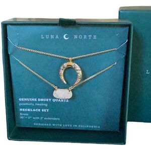 LUNA NORTE NIB NECKLACE SET BRASS GENUINE DRUZY QUARTZ POSITIVELY HEALING