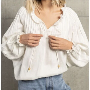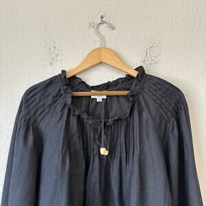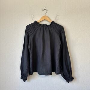 LUNAR FOX Charlotte Blouse Women Sz 6 Black Linen Balloon Sleeve Minimalist Goth W12556