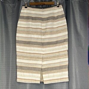 LUNDSTROM SIZE 6 PENCIL SKIRT BEIGE NEUTRAL STRIPES