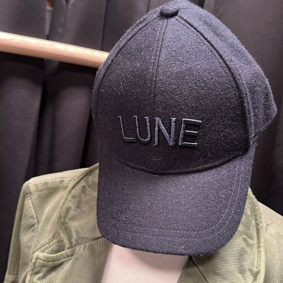 LUNE Davey Wool Logo Baseball Cap Dark Navy Blue New