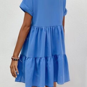 LUNE Roll Cuff Ruffle Hem Solid Dress