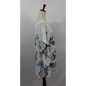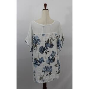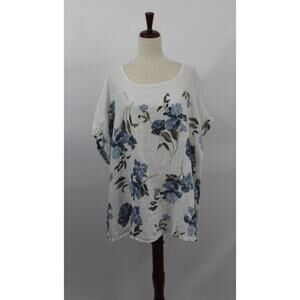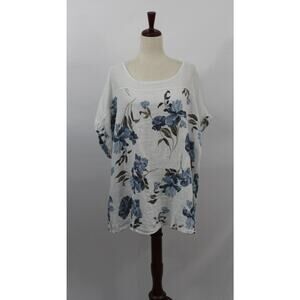 Women's top by LUNGO L'ARNO. Size 3x. 100% linen, crochet is 100% cotton. White with blue floral print, Crochet along top. Rolled edge of sleeve. NWT new with tags. Made in Italy.
