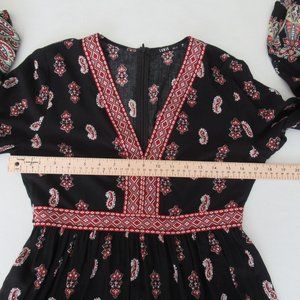 LUNIK Floral Paisley Boho Empire Waist Dress Small Long Sleeve, Black Multicolor