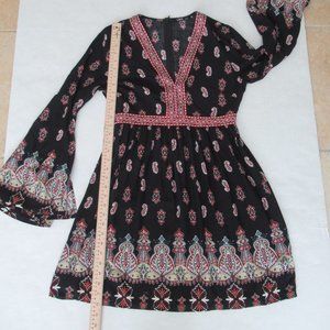 LUNIK Floral Paisley Dress, Long Bell Sleeve Dress Size S