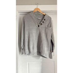 LUNY Cozy Cotton Silk Gray Sweater Knit Henley Size M