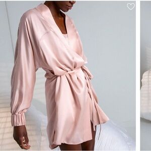LUNYA BNWT Washable Silk Short Robe in Delicate Pink Size XS/S