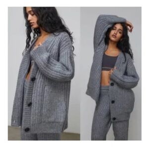 LUNYA Chunky Wool Cardigan in Serene Gray size xs/s