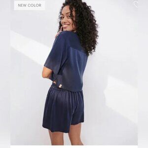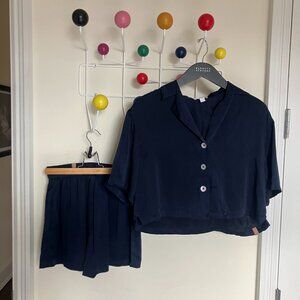 LUNYA Washable Silk Button up Short Set - XS - Deep Blue - EXCELLENT CONDITION