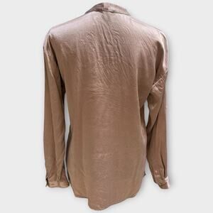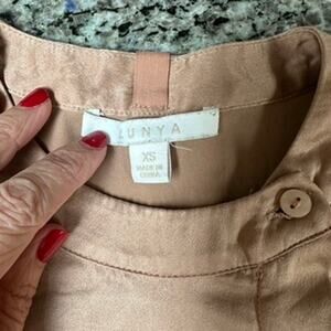 LUNYA Women's Long Sleeve Washable Silk Button Up Pajama Top XS Otium Tan