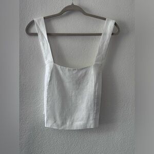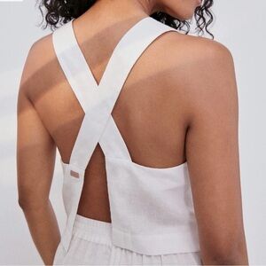 LUNYA Woven Linen Crossback Tank Medium Sincere White Cropped Top Pajama Lounge