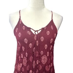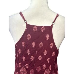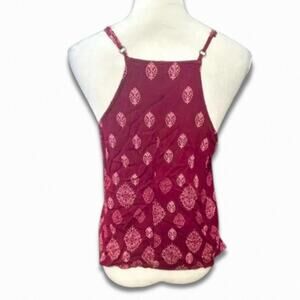 LUQ Halter Top Adjustable Straps Geometric Pattern Breathable Burgundy Small