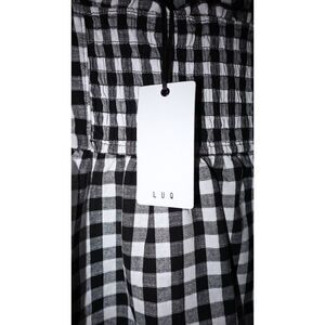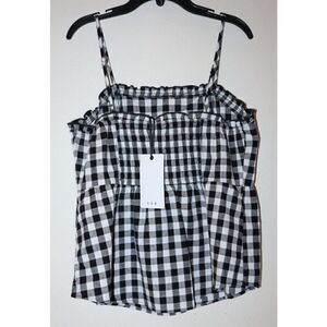LUQ J75800CGZBP Women's Sz M Black/White Plaid Smocked Spaghetti Strap Tank Top