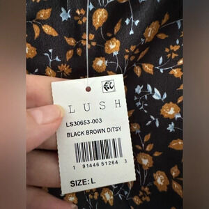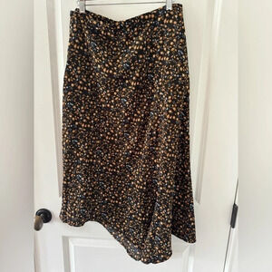 LUSH Asymmetrical Black Brown Ditsy Skirt ~ L ~ NWT!