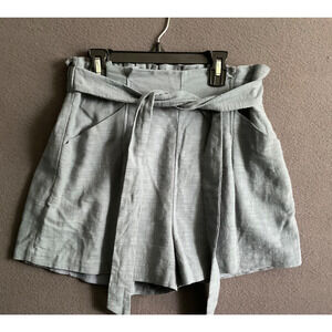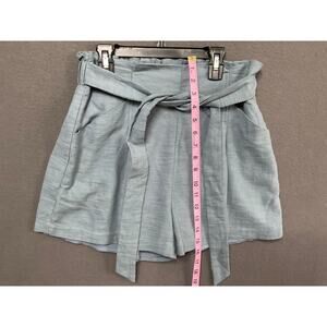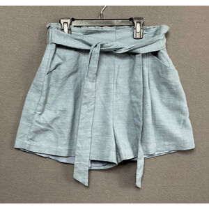 LUSH Belted Shorts M Blue High Waist Lightweight Paperbag Summer Pockets